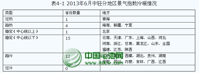 表4-1 2013年6月中輕分地區景氣指數冷暖情況