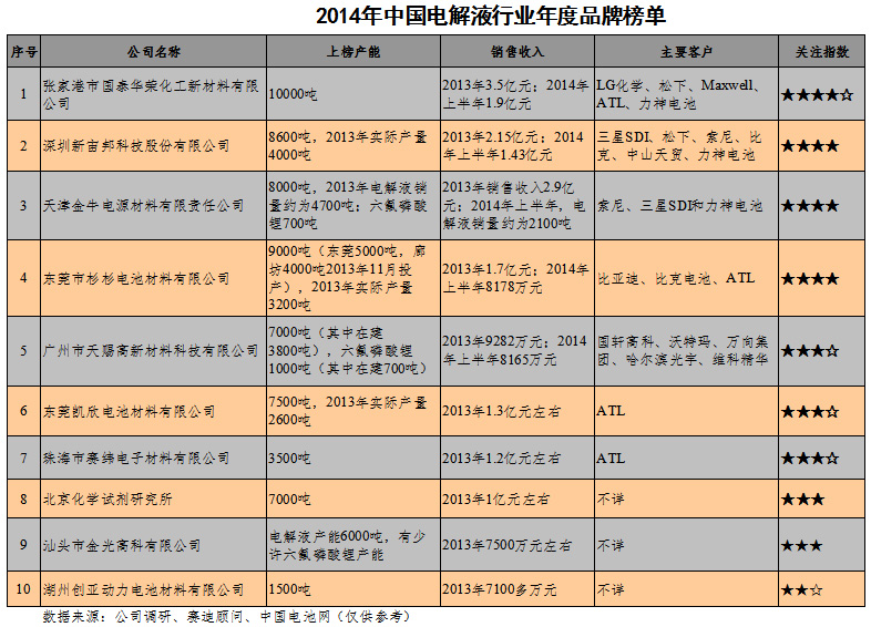 根據我國電解液企業的產能數據、客戶分布、公司情況、誠信形象等得出,數據來源為公司調研和 ... 查閱全文