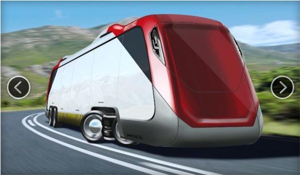 這款八輪概念貨運卡車名為Overdrive。該車能夠自動運行,無需司機。Overdrive由兩個氫燃料電池提供能量,能夠產生500至1000馬力的動力。它可以前進、后退,也可以側身行駛,以適應在狹窄的空間中行駛。該車擁有八個獨立的貨艙,而且這些貨艙可以通過智能手機進開鎖。