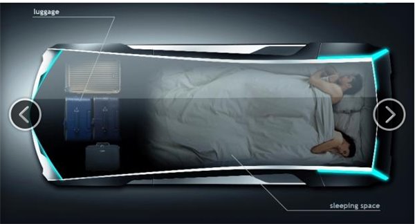 誰不想乘坐一輛自動化的汽車而非擁擠的飛機去往一個遙遠的城市?更何況,這輛汽車可以讓你一路睡覺?這就是查爾斯·龐巴迪的“夜行車(Night Car)”的創意。Night Car通過智能手機啟動。它可以連接Wi-Fi,而且配備了視聽系統,車主在路途中還可以進行娛樂活動。