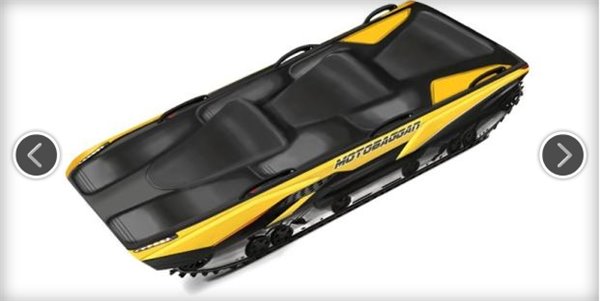 和龐巴迪雪地摩托一樣,Motobaggan也屬于一種摩托化的、自動運行的雪地車,能夠在用戶乘雪橇下山后將他帶回山上。Motobaggan能夠雙軌運行,具有三個座位,其傳感器能夠跟蹤車主上下山。Motobaggan也配備了一個鉤子,可以用來拖拉雪橇后上坡。