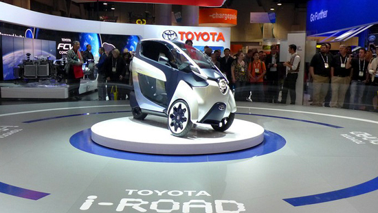 豐田汽車公司在此次展會上帶來了三輪概念車“i-Road”。這款車被稱作是“城市通勤車”,其車身窄小,依靠純電力驅動,能很好的應對大城市的擁堵和環境污染問題。