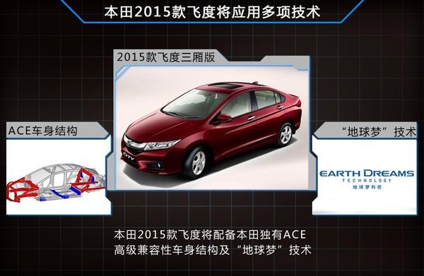 在2014年底特律車展上,本田也發(fā)布了全新飛度車型,新車將配備本田獨有的ACE高級兼容性車身結(jié)構(gòu),這是本田引以為傲的G-CON技術上革新發(fā)展而來 的新一代車身技術。能使車輛在發(fā)生碰撞的時候能夠充分吸收撞擊的能量,保持車輛的安全性能。動力方面,全新飛度將應用“地球夢”科技,并搭載汽油發(fā)動機和 混動版多種動力系統(tǒng),進一步提升燃油經(jīng)濟性。