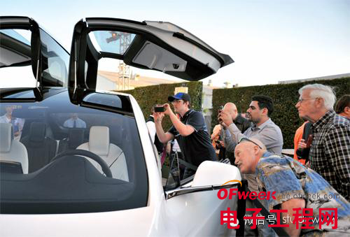 6月20日在特斯拉設(shè)計(jì)中心的展示會(huì)上賓客紛紛給Model-X拍照,這款車將在2014年上市