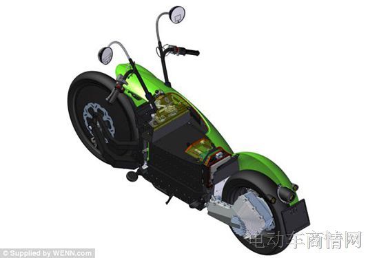 這輛車看起來就像美式機車,他的電控和電傳系統集成到了后輪,這樣就能提供一個低維護成本的騎行體驗。而在核心的部位則是整個車的電池系統。在兩個輪軸之間最短的連接部成一直線,中間的結構是由鋁制成的,這個地方成為了避震器和電池外殼兩面高分辨率的2.4英寸后視鏡為駕駛員提供了關于車輛和行駛的信息。