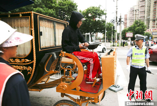 6月9日,一輛裝飾豪華的"四不像"電動車行駛在北京街頭,被執勤交警阻攔,隨后被帶走。