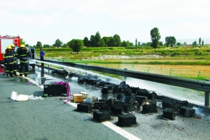 8月8日下午3時30分左右,一輛拉載大量蓄電池的輕卡在行駛至連霍高速武威段1926公里處時,因高溫炙烤導(dǎo)致拉載的蓄電池突發(fā)自燃,車上62塊蓄電池被大火燒毀。武威消防支隊經(jīng)過10分鐘的緊張撲救,成功撲滅大火。