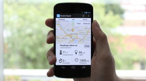 這一公司現(xiàn)在啟動了WeatherSignal程序的衍生品,使用在有空氣溫度、濕度、壓力感應(yīng)器的手機(jī)。最終,它是希望這一程序能夠用在一個眾人數(shù)據(jù)源的天氣預(yù)報(bào)系統(tǒng),這一系統(tǒng)能夠用來為特定的區(qū)域,如一個提供的城市區(qū)域,提供實(shí)時天氣信息。它甚至可能與CitiSense程序/設(shè)備混合,它能提供當(dāng)?shù)氐谋娙藬?shù)據(jù)源的空氣質(zhì)量數(shù)值。
