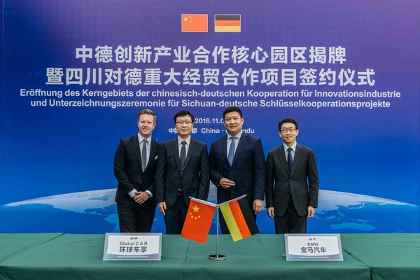 11月2日,在成都中德創新產業合作核心園區,寶馬(中國)汽車貿易有限公司與環球車享汽車租賃有限公司就在成都開啟分時租賃服務簽署了合作意向書。根據規劃,寶馬將交付100輛純電動BMW i3升級版,通過環球車享電動汽車分時租賃在成都投入運營。這是寶馬以革命性的產品和創新的服務模式推動個人出行可持續發展的又一創舉。