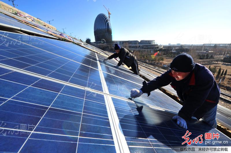 當日,北京寒氣襲人,在位于北京懷柔雁棲湖大壩上,建設的用近萬塊164cm×99cm太陽能板組成的太陽能發電廠工程,即將接近尾聲。據悉,該工程建成后將作為2014年在中國主辦APCE領導人非正式會議的接待酒店的環保能源供應等,也將成為北京市雁棲湖風景區一道環保生態風景,目前該工程規模,為世界水庫大壩上建設太陽能發電廠之最。