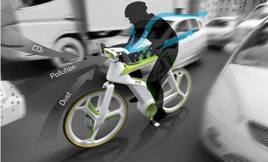 此外,這款APB自行車還配備了電動馬達及鋰電池。行車過程中,蹬動腳踏板可為凈化系統提供能量——原理和手搖發電機有些類似,在自行車停靠之后,借著電池的能量,系統仍可繼續完成凈化空氣的偉大事業。在陽光的配合下,APB可通過綠色的太陽能電池板儲能,并將電能用于自行車動力,以及為過濾系統供電。