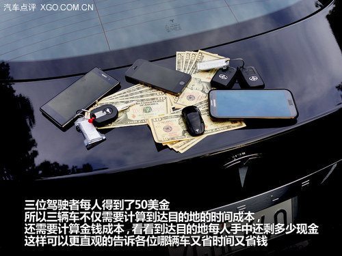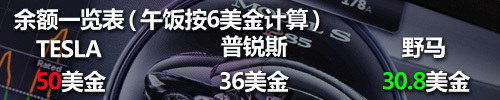 從租賃公司搞定了TESLA之后,順便把野馬和普銳斯補滿了87#汽油,三輛車聚齊后我們加入了一個小環(huán)節(jié):給三位駕駛者每人派發(fā)50美金。所以三輛車不僅需要計算到達目的地的時間成本,還需要計算金錢成本,看看到達目的地每人手中還剩多少現(xiàn)金,這樣可以更直觀的告訴各位哪輛車又省時間又省錢。