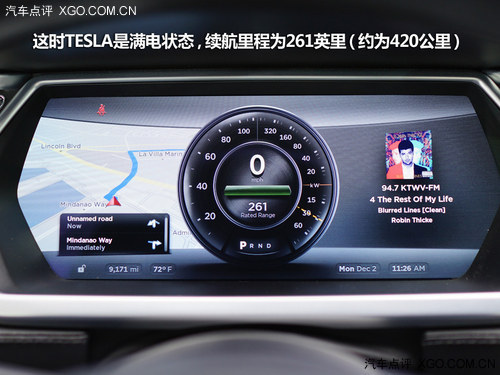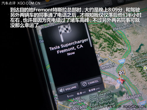 為了摸清TESLA的情況,我們并沒有直接將目的地約定在最終要到達的舊金山特斯拉總部,而是首先約定在距離始發(fā)地140公里的特斯拉充電站,集合之后再做計劃,經(jīng)過這一番折騰之后,終于在上午11:37分時啟程了,這時TESLA是滿電狀態(tài),續(xù)航里程為261英里(約為420公里)。