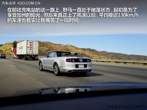 在前往充電站的這一路上,野馬一直處于敞篷狀態(tài),起初是為了享受加州的陽光,但后來真正上了高速以后,平均接近130km/h的車速也著實讓我痛苦了一段時間,臉被吹的冰冷,頭皮甚至都有些發(fā)麻,雖然暖風一直保持在高檔位,但好像也沒什么太多的效果,像我這種沒有開過敞篷車的屌絲現(xiàn)在終于明白“空氣圍脖”究竟有何用途了,不過已然這樣了不如將計就計好了,在保證安全的情況下,直接將相機伸出車外拍照。