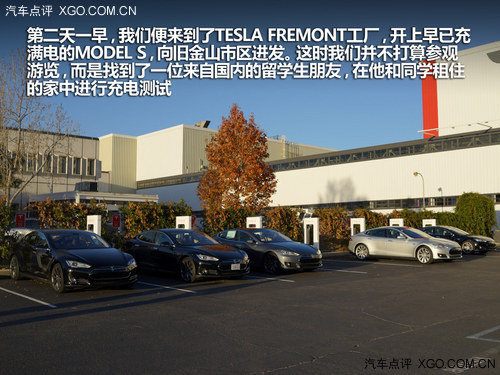 第二天一早,我們便來到了TESLA FREMONT工廠,開上早已充滿電的MODEL S,向舊金山市區(qū)進發(fā)。這時我們并不打算參觀游覽,而是找到了一位來自國內(nèi)的留學生朋友,在他和同學租住的家中進行充電測試。
