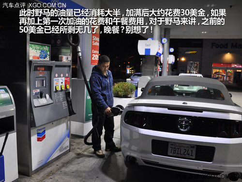 好了,言歸正傳,隨著時間的推移,夜幕也逐漸襲來,經(jīng)過近五個小時的長途跋涉,兩輛車終于在19:44分到達了指定的目的地,合照之后奔向加油站,此時野馬的油量已經(jīng)消耗大半,加滿后大約花費30美金,如果再加上第一次加油的花費和午餐費用,對于野馬來講,之前的50美金已經(jīng)所剩無幾了,晚餐?別想了!而普銳斯,在完成了兩次加油和午餐的花費之后,還剩余了13美金左右,所以輸贏已經(jīng)很明顯了。