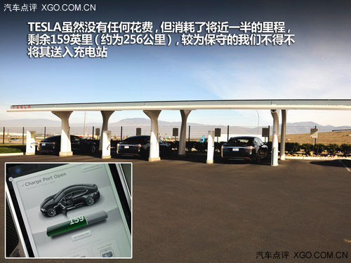 經(jīng)過一個半小時的車程之后,我們于當?shù)貢r間下午13:05到達了第一個集合點,為了保證“比賽“的公平性,我們將野馬和普銳斯直接開進加油站,最終第一輪比賽的成績想必大家已經(jīng)猜到結(jié)果,普銳斯消耗燃油2.073加侖(約為7.9升),花費8美金,而野馬則以3.420加侖(約為13升)的燃油消耗,和13.2美金的花費落敗,TESLA雖然沒有任何花費,但是消耗了將近一半的里程,剩余159英里(約為256公里),較為保守的我們不得不將其送入充電站。