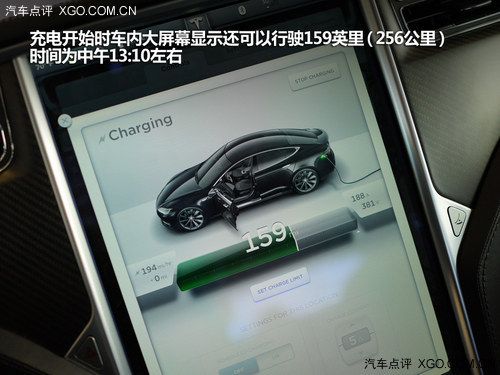 充電開始時車內(nèi)大屏幕顯示還可以行駛159英里(256公里),時間為中午13:10左右,充電的過程很順利,只需要打開左后尾燈的充電接口,將電纜插入并看到接口變成綠色即可,車內(nèi)大屏幕和儀表盤上方會實時顯示充電情況,比如在Supercharger充電站充電時,瞬時電壓甚至高達398V,電流91A,每個小時能沖將近172英里(276公里),如此看來,效率還是非常高的。