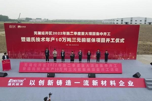 100億元!道氏技術安徽蕪湖年產10萬噸三元前驅體項目開工