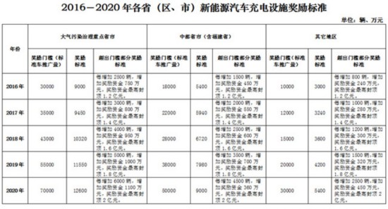 2016年3月底前,各省(區(qū)、市)應(yīng)將新能源汽車推廣應(yīng)用實(shí)施方案及充電基礎(chǔ)設(shè)施運(yùn)營方案報(bào)財(cái)政部、科技部、工業(yè)和信息化部、發(fā)展改革委、能源局等部門(以下簡稱“五部門”)備案。未按要求制定相關(guān)辦法的將不得享受中央財(cái)政的充電基礎(chǔ)設(shè)施獎(jiǎng)勵(lì)資金。