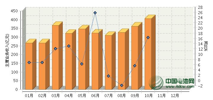1-10月電池行業(yè)主營業(yè)務(wù)收入情況分析