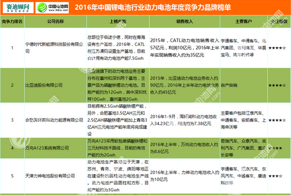 2016年中國(guó)鋰電池行業(yè)動(dòng)力電池年度競(jìng)爭(zhēng)力品牌榜單