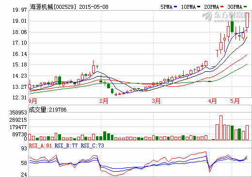 • 8日新能源汽車概念盤后統計 海源機械漲停 日期:2015-05-08 15:24:44 點擊:168 好評:0