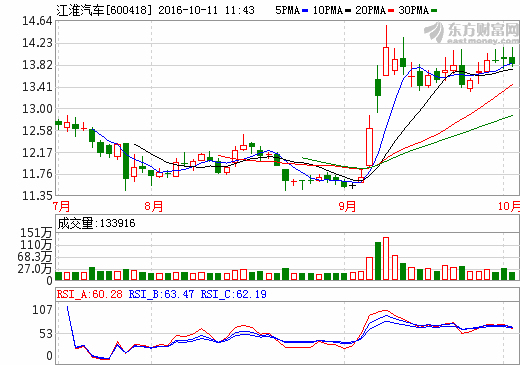 • 江淮汽車1-9月銷售新能源車13707輛 同增達125.18% 日期:2016-10-11 11:40:59 點擊:109 好評:0