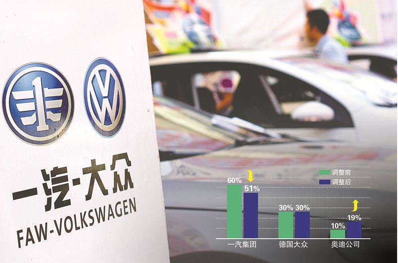 目前,一汽-大眾股比為一汽集團占60%、德國大眾占30%、奧迪公司占10%,調整方案或為一汽集團占51%、德國大眾占30%、奧迪公司占19%。...