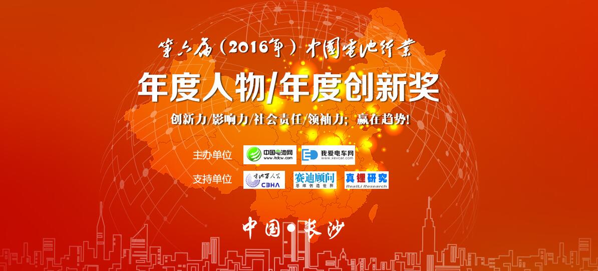 由中國電池網(www.ai0394.cn)、我愛電車網(www.xevcar.com)主辦,電池百人會(CBHA)、賽迪顧問(CCID)和真鋰研究(RealLi)協辦的第六屆(2016年)中國電池行業年度人物/年度創新獎評選活動即日起拉開帷幕。...