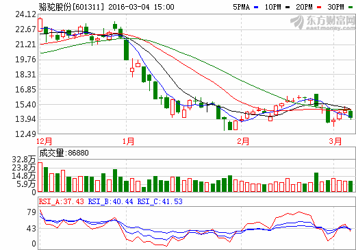 • 駱駝股份2015年凈利潤6.1億元同比下降9.15% 日期:2016-03-02 13:51:51 點擊:192 好評:0