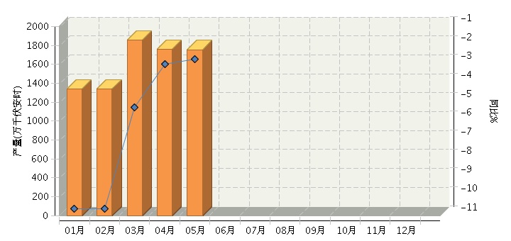 1-5月全國鉛酸蓄電池行業累計完成產量同比增長-4.50%。...