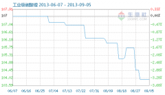 9月5日工業(yè)級碳酸鋰商品指數(shù)為103.95,與昨日持平,較周期內(nèi)最高點112.10點(2012-11-04)下降了7.27%,較2012年01月05日最低點98.94點上漲了5.06%。(注:周期指2011-09-01至今) 工業(yè)級碳酸鋰商品指數(shù)...